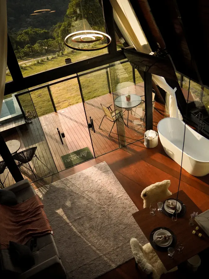 Um refúgio especial onde o amor e a vida se encontram em perfeita harmonia com a natureza. A Paraju Cabin, uma encantadora cabana A-frame em Domingos Martins, oferece uma experiência sensorial única, repleta de aconchego e reconexão.Crie momentos inesquecíveis e faça memórias duradouras ao contemplar o pôr do sol em um ambiente que une tranquilidade e beleza natural. Desfrute da serenidade e da beleza da Paraju Cabin e viva uma estadia que promete ser verdadeiramente revitalizante.