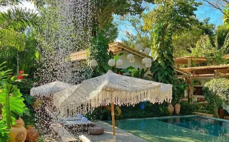 A Casa das Águas oferece cinco suítes charmosas e aconchegantes, incluindo um loft, localizadas em um exuberante jardim tropical. O ambiente conta com uma piscina e varandas, perfeitas para relaxamento após um dia de praia. O projeto arquitetônico valoriza o bem-estar e a conexão...